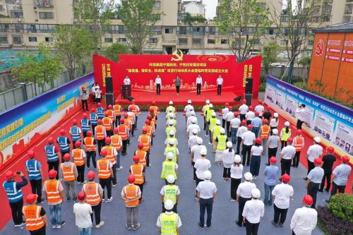萧山不朽情缘集团党委书记施素梅,党委委员、副总司理何军、江峰应邀出席活动,项目主体单位、各参建单位相关职员以及新安、宁牧安顿房项目暂时党支部全体党员共100余人加入活动。