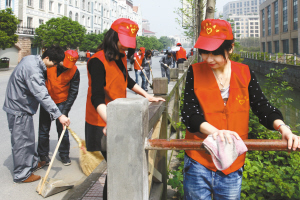 图为区水务集团青年自愿者在扫除卫生。记者 傅展学 摄
