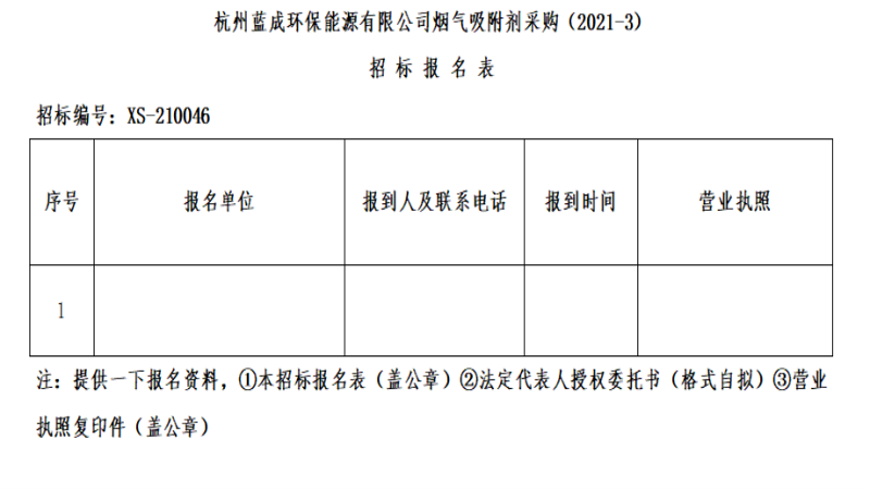º¼ÖÝÀ¶³É»·±£ÄÜÔ´ÓÐÏÞ¹«Ë¾£¬Æ¾Ö¤º¼ÖÝÏôɽ²»ÐàÇéÔµ¼¯ÍÅÎï×ʲɹºÖÎÀíÒªÇ󣬶Ժ¼ÖÝÀ¶³É»·±£ÄÜÔ´ÓÐÏÞ¹«Ë¾ÑÌÆøÎü¸½¼Á²É¹º£¨2021-3£©¾ÙÐйûÕæÕб꣬ÑÌÆøÎü¸½¼ÁÓÃÓÚÎÛÄàȼÉÕ·¢µçÑÌÆø´¦Öóͷ£¡£