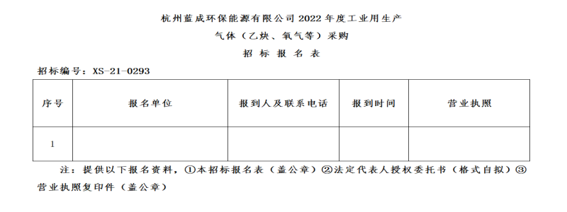 杭州蓝成环保能源有限公司,凭证杭州萧山不朽情缘集团物资采购治理要求,对杭州蓝成环保能源有限公司2022年度工业用生产气体(乙炔、氧气等)采购举行果真招标。