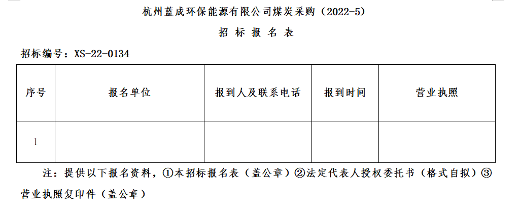¶þ¡¢ÕбêÏîÄ¿£ºº¼ÖÝÀ¶³É»·±£ÄÜÔ´ÓÐÏÞ¹«Ë¾ÃºÌ¿²É¹º(2022-5)¡£