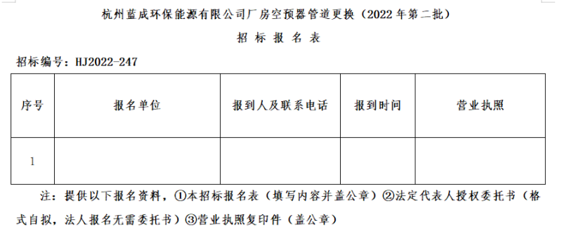 一、招 标 人:杭州蓝成环保能源有限公司,招标编号:HJ2022-247