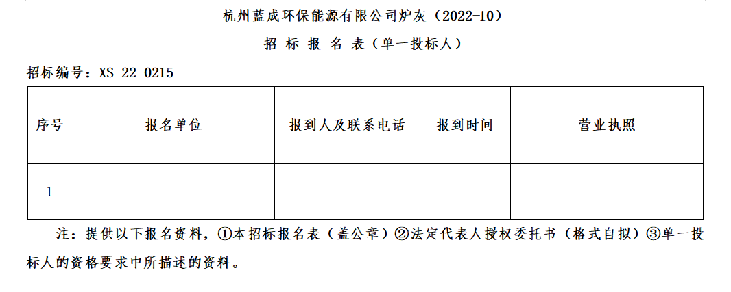 Ò»¡¢ÕÐ ±ê ÈË£ºº¼ÖÝÀ¶³É»·±£ÄÜÔ´ÓÐÏÞ¹«Ë¾£¬Õбê±àºÅ£ºXS-22-0215  ¡£