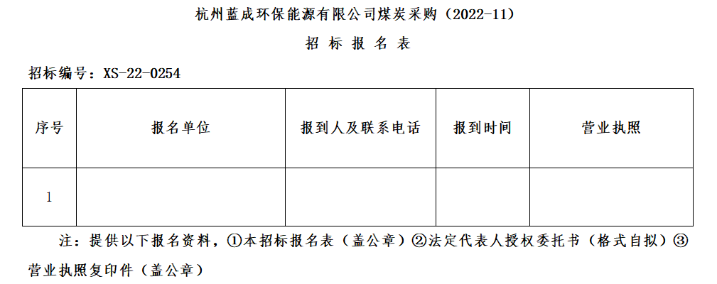 ¶þ¡¢ÕбêÏîÄ¿£ºº¼ÖÝÀ¶³É»·±£ÄÜÔ´ÓÐÏÞ¹«Ë¾ÃºÌ¿²É¹º(2022-11)¡£