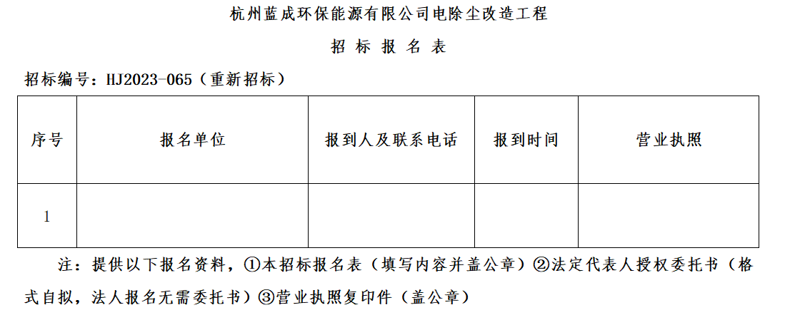一、招 标 人:杭州蓝成环保能源有限公司,招标编号:HJ2023-065(重新招标)