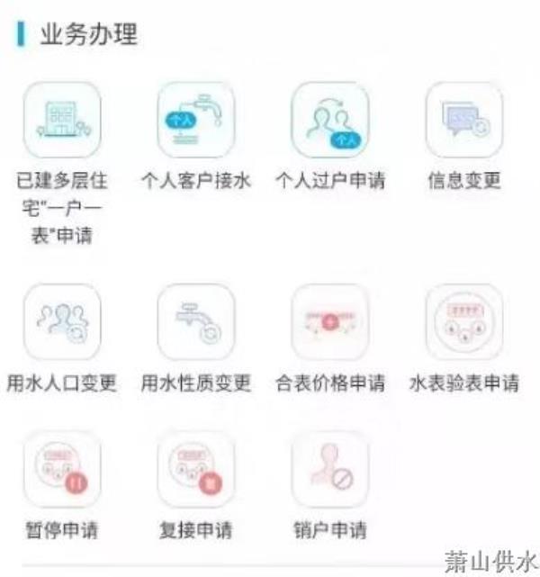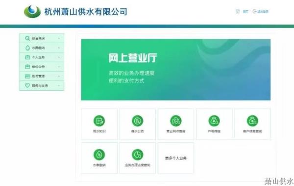 杭州萧山供水有限公司 2020年2月2日 办理途径 1 上岸“萧山供水网上营业厅” http://wt.xswater.com:8079/#/ 2 微信公众号搜索“萧山供水掌上营业厅”