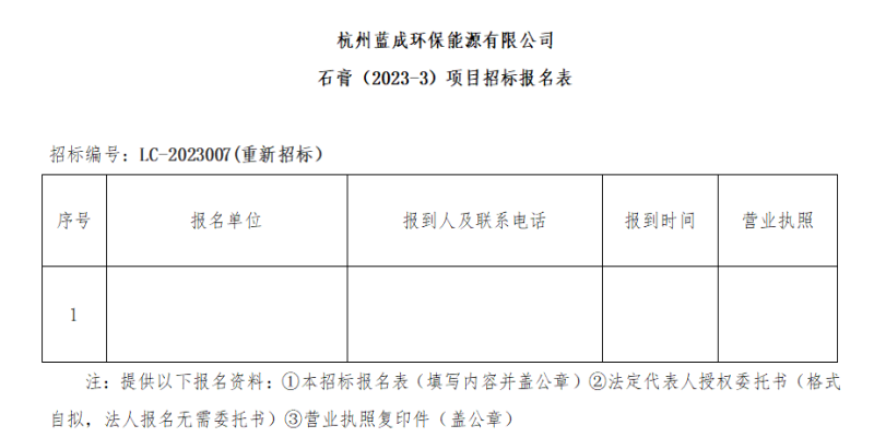 Ò»¡¢ÕР±ê ÈË£ºº¼ÖÝÀ¶³É»·±£ÄÜÔ´ÓÐÏÞ¹«Ë¾£¬Õбê±àºÅ£ºLC-2023007£¨ÖØÐÂÕб꣩¡£