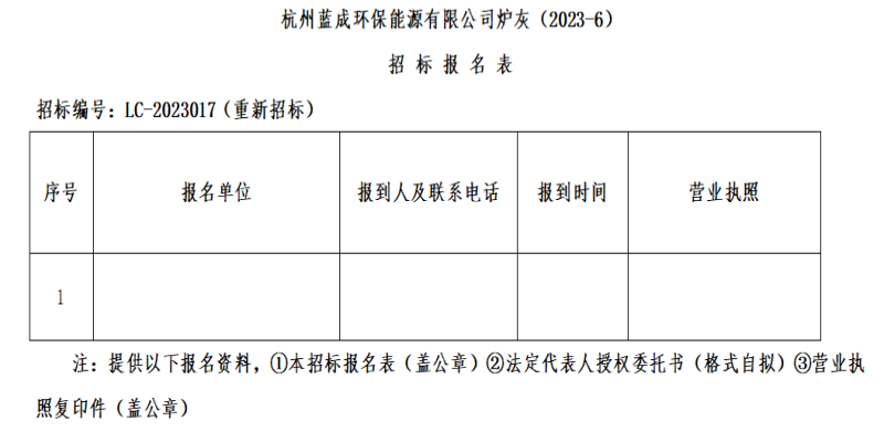 杭州蓝成环保能源有限公司炉灰(2023-6)招标通告