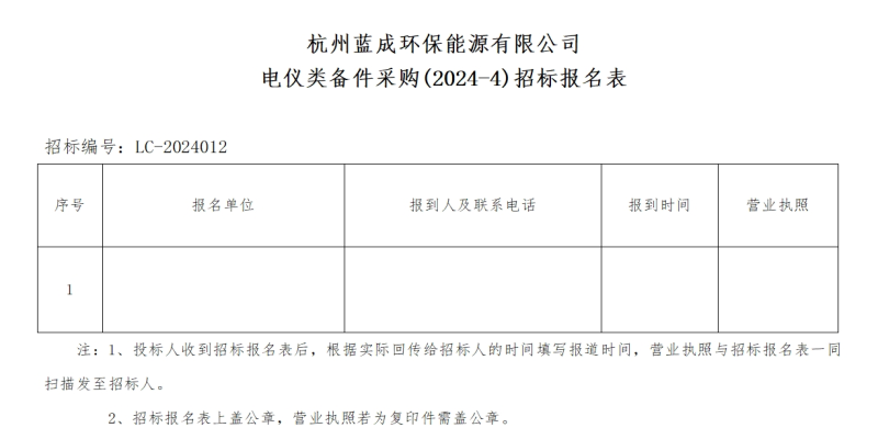 Ò»¡¢ÕР±ê ÈË£ºº¼ÖÝÀ¶³É»·±£ÄÜÔ´ÓÐÏÞ¹«Ë¾ £¬Õбê±àºÅ£ºLC-2024012 ¡£