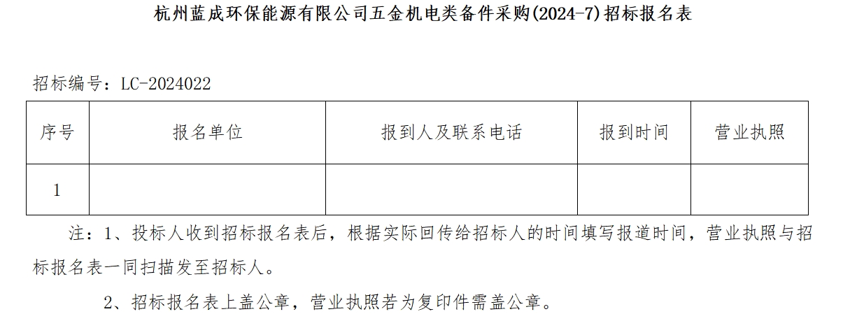 Îå¡¢·¢·ÅÕбêÎļþʱ¼ä£ºÓÐÒâÏòµÄͶ±êÈ˿ɴÓ2024Äê7ÔÂ30ÈÕÖÁ2024Äê8ÔÂ3ÈÕ£¬ÖðÈÕÉÏÎç9:00~11:30ʱ£¬ÏÂÖç12:00~16:00ʱ£¨±±¾©Ê±¼ä£©£¬ÔÚº¼ÖÝÀ¶³É»·±£ÄÜÔ´ÓÐÏÞ¹«Ë¾ÁìÈ¡ÕбêÎļþ£¬¿Éµç×Ó°æµÄÐÎʽ·¢³ö¡£