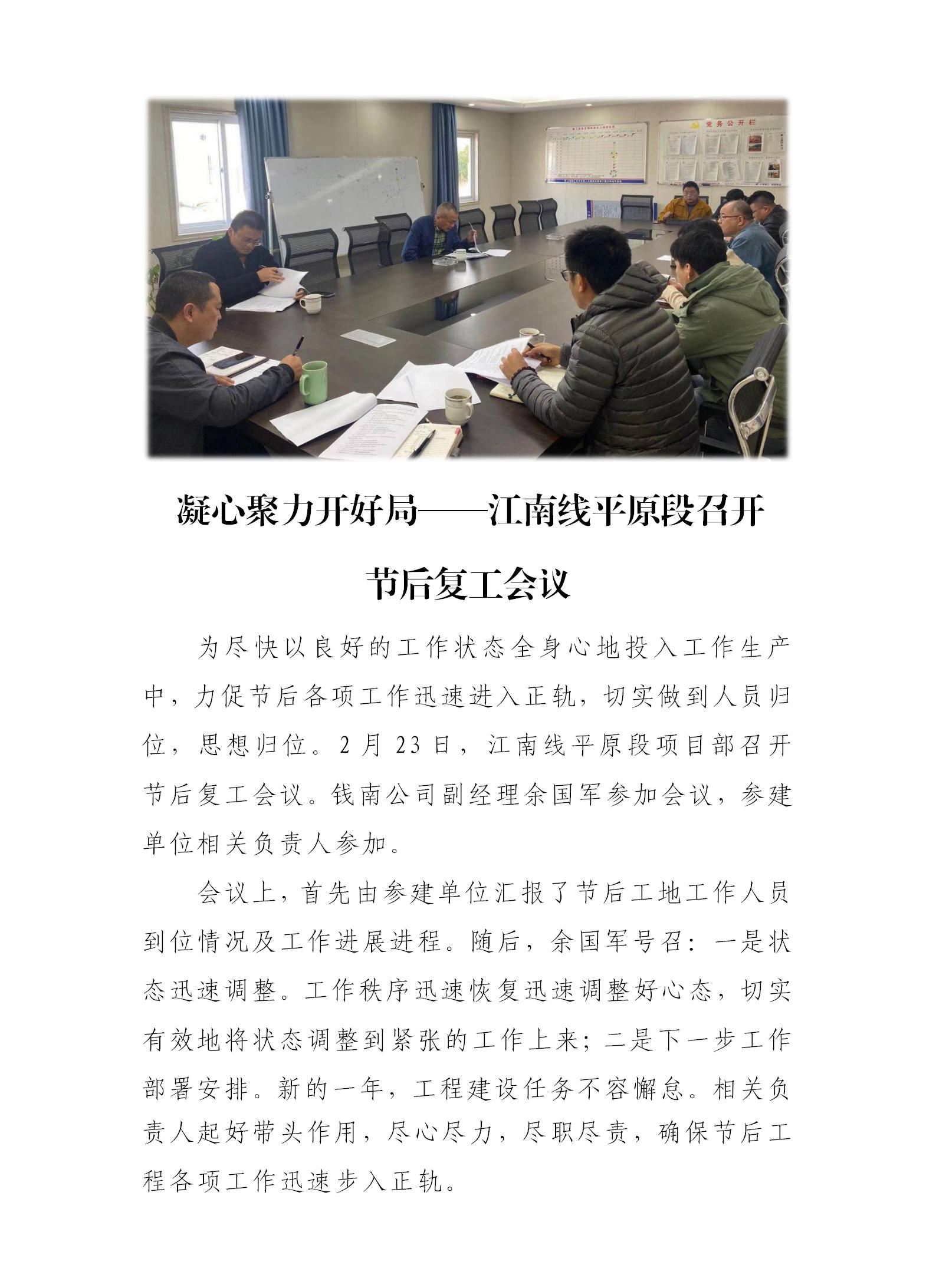 凝心聚力开好局——江南线平原段召开节后复工聚会