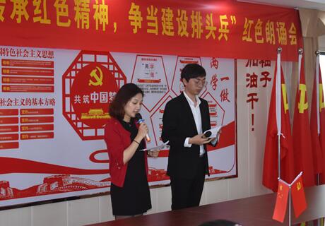 2019年5月16日下昼, 江南线暂时党支部在江南线山岭段党员活动室组织开展以“传承红色精神,争当建设排头兵”为主题的红色朗诵会。集团党委委员、副总司理兼钱南公司董事长、总司理胡妙生,市市政公用公司副总司理柯鹤新,钱南公司副总司理余国军出席本次活动。