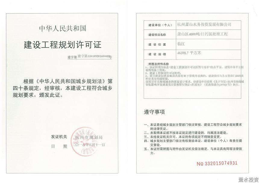 5月11日,萧山区4000吨/日污泥处置惩罚工程项目正式取得杭州市妄想局揭晓的建设工程妄想允许证,至此,该项现在期审批程序画上了圆满的句号,同时也为项目主体工程周全开工建设涤讪了优异的基础。
