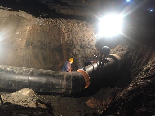 经污水抽排、原管拆除、沟槽开挖、新旧管道毗连等20余小时不中止作业,于16日下昼5时许完成迁改,比原妄想提前5小时具备通水条件。
