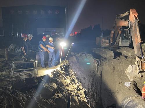 与以往通俗管道割接相比,此次割接影响规模广,2处割接点同时施工,时间紧使命重,且作业点深,管径大,作业空间有限。为确保施工清静、有序、高效地推进,在正式施工前13天,污水公司启动切割工程应急治理机制,多部室联动,层层落实停水通知发放、清静施工准备以及停水调理安排等各项节点事情。