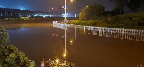 7月6日破晓3时许,经由7小时强排,江东大道与梅林大道交织口路面积水情形获得解决。