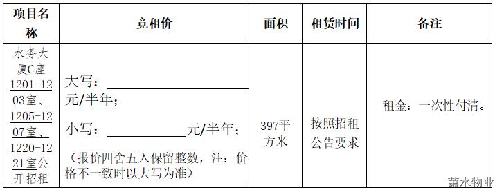 ¡¡¡¡ËµÃ÷£ºÍ¶±êÕß±¨¼Û¾ùÊÓΪµÚÒ»Äê×â½ð¼ÛÇ®£¬¶Ô±êµÄÆäËûÌõ¿îÌåÏÖÈϿɡ£